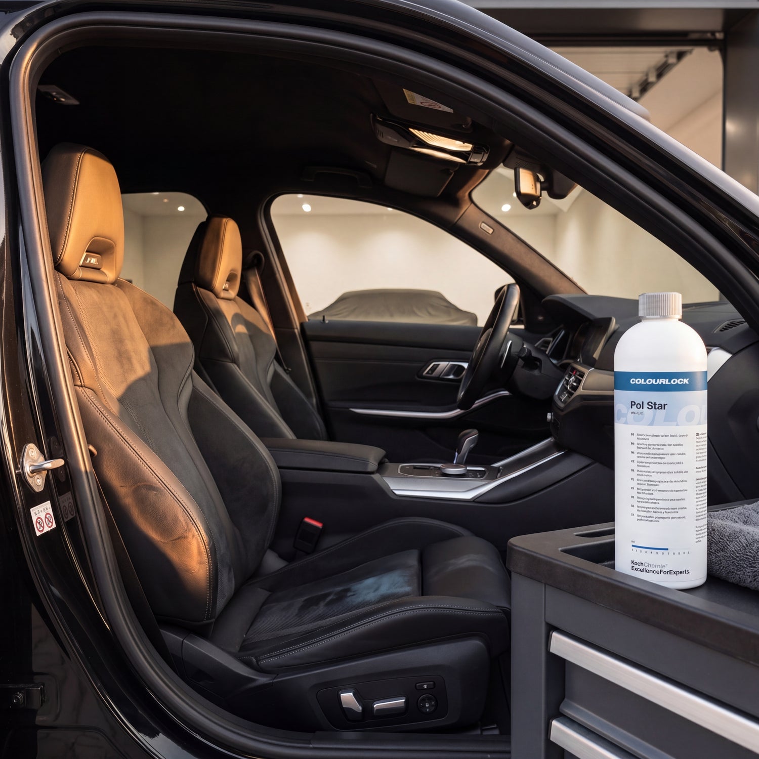 COLOURLOCK Pol Star Cleaner Concentrate on tool trolley next to BMW M3 interior