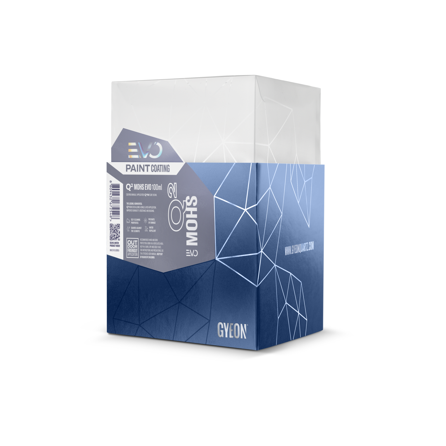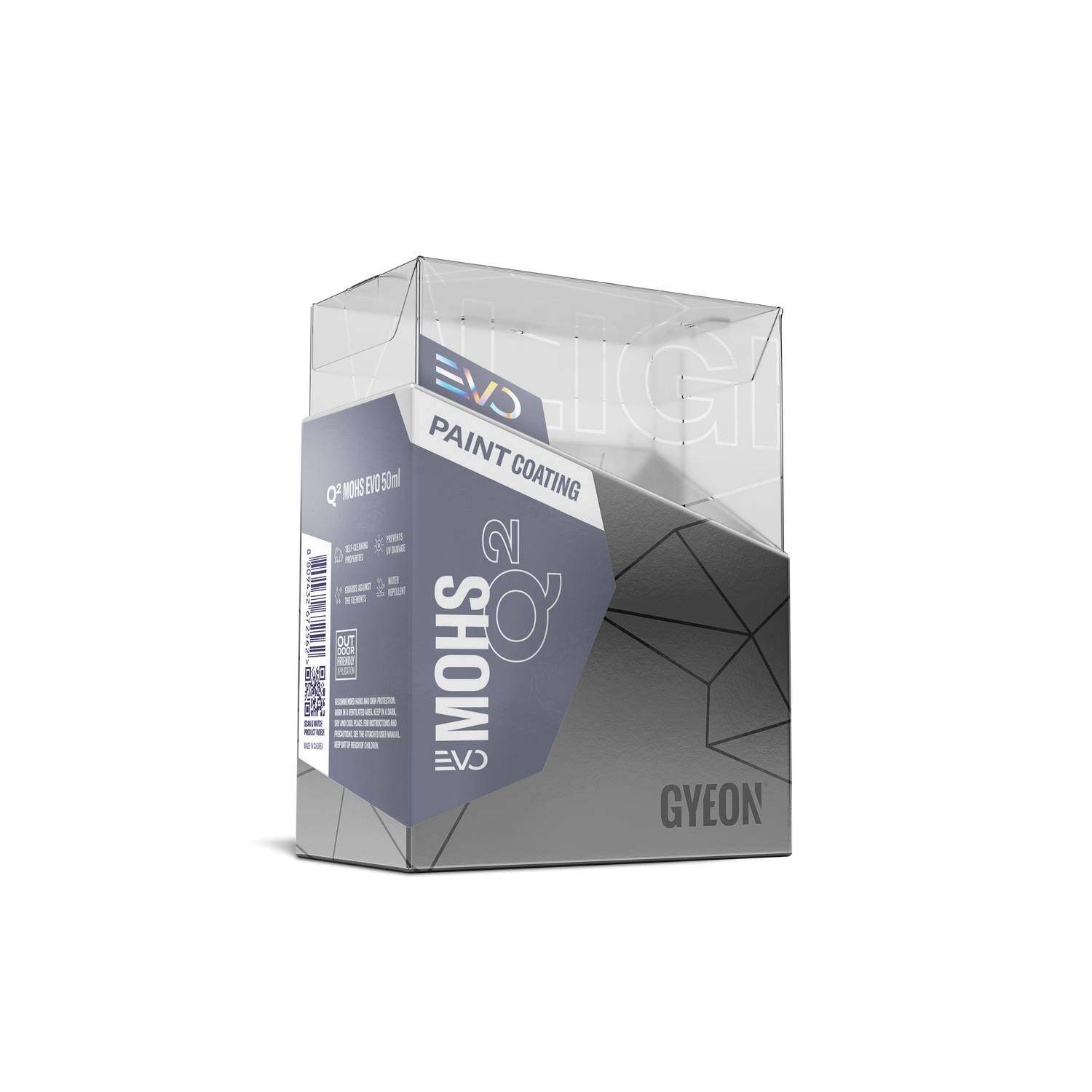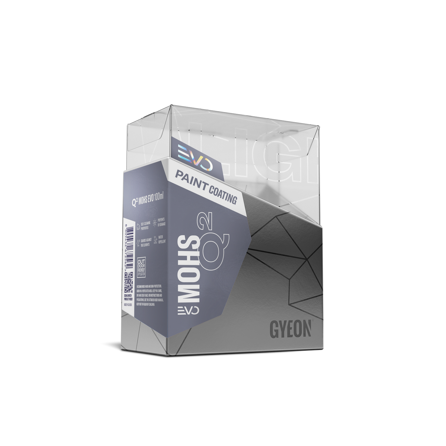 GYEON Q² Mohs EVO ist eines der Flaggschiff-Coatings von GYEON – eine professionelle Keramikbeschichtung, die höchste Schutzwirkung mit ausgeprägtem Glanzeffekt verbindet. Die Beschichtung bildet eine härteoptimierte SiO₂-Schicht, die chemisch mit dem Klarlack verbunden wird und dauerhaft Schutz vor Kratzern, UV-Strahlung, Vogelkot und Chemikalien bietet. Mohs EVO ist die Weiterentwicklung des bewährten Mohs – mit verbesserter Haftung, höherer Schichtdicke und einem intensiveren Glanzgrad.
