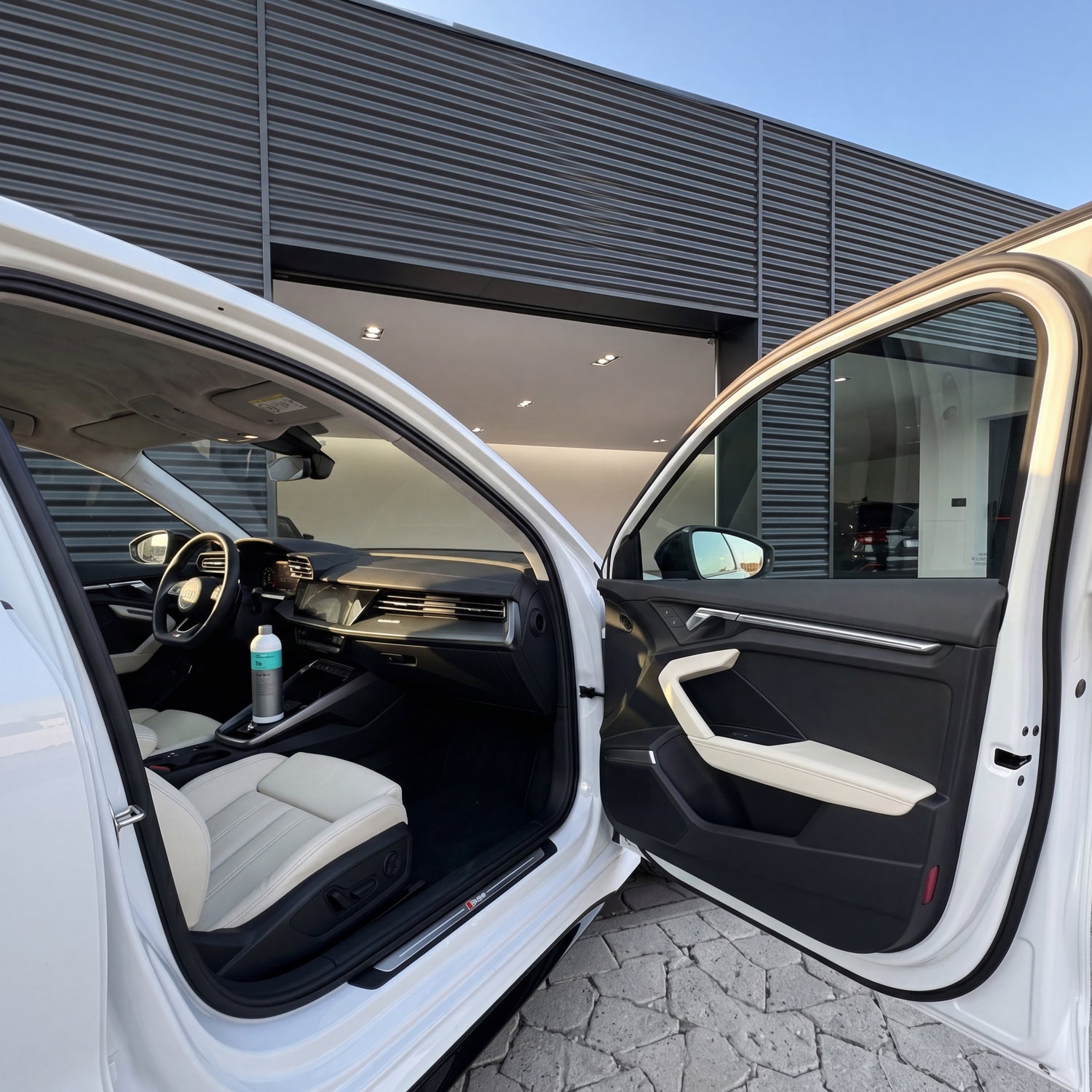Nicht geeignet ist er überall dort, wo Griffigkeit sicherheitsrelevant ist. Das betrifft Lenkrad, Schalthebel, Pedale, Handbremsgriff und Fußmatten. Die seidenmatte Versiegelung reduziert den Reibwert minimal, und genau dieses Minimum willst du an Stellen, an denen du das Auto steuerst, nicht haben. Auch Alcantara, Stoff und Leder bleiben außen vor — dafür gibt es Spezialprodukte.