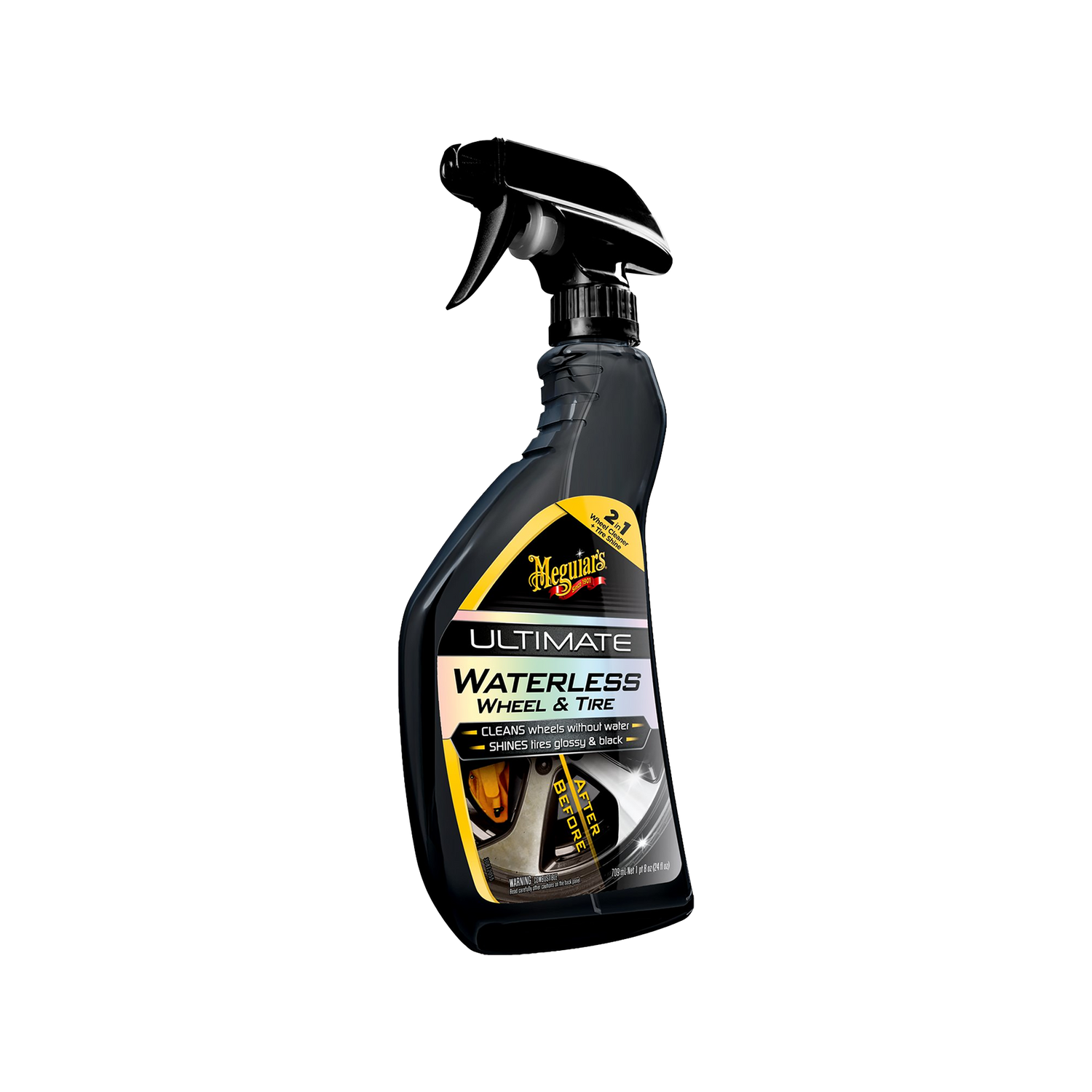 Ultimate Waterless Wheel and Tire ist ein 2-in-1-Produkt für Felgen und Reifen. Es entfernt Bremsstaubrückstände, Straßenfilm und Wasserspuren von Felgenoberflächen, während es gleichzeitig Reifengummi reinigt und mit einem tiefen, natürlichen Glanz pflegt – alles ohne Wasser oder Abspritzen.